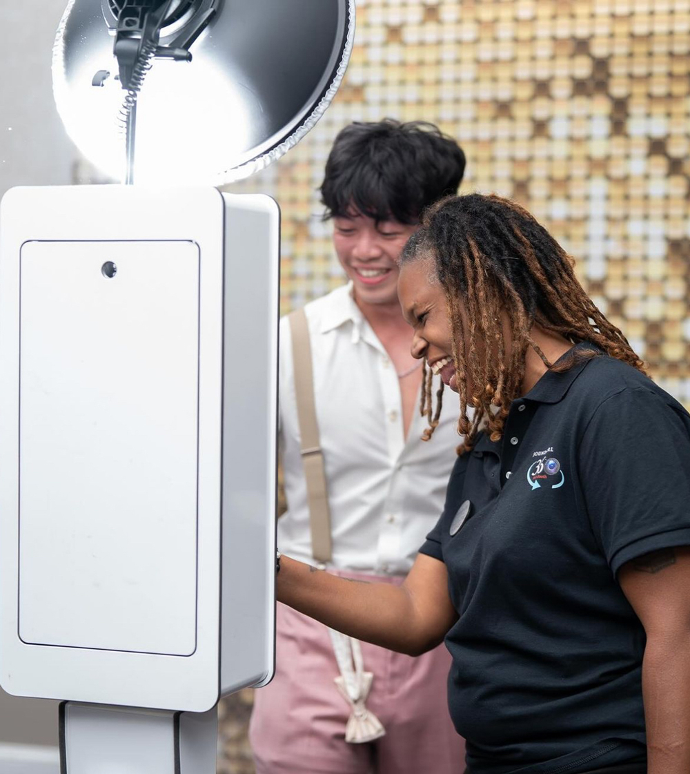 Our Open Air Photo Booth Rental is a game-changer for event photography. This open and inviting setup is perfect for groups of all sizes, ensuring no one is left out of the picture. Our Open Air Photo Booth creates an engaging, inclusive atmosphere.